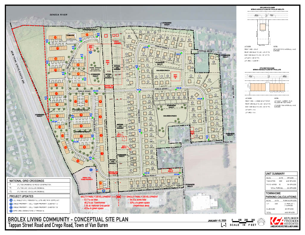Crego Farms is awaiting final PUD approval for the proposed 292 units, including 200 townhomes, and 92 single-family homes spanning over 105 acres. Although site work has not yet begun, the plan has been approved by New York State’s Historic Preservation Office due to the site’s historical significance. This reconfigured plan with more townhomes and single-family units is anticipated to experience a more expedited approval process, aligning with evolving development priorities.